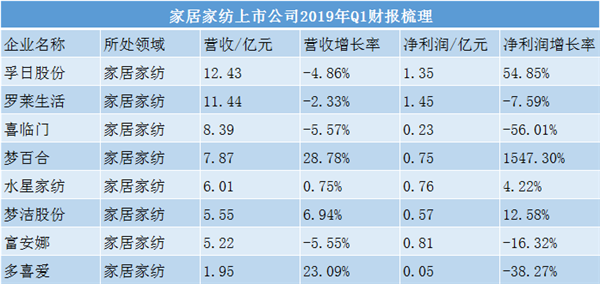 就整个家纺行业第一季度的表现来说,无论是营收还是净利润的增长都不平均,增幅无法达到一致水平,负增长较多。2019全年能否突破还有待观察。