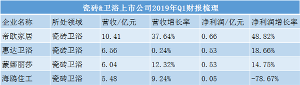 这些数据反映出2019年第一季度的家居行业运转情况不乐观。而净利润增长率负值和营收增速负值的企业分布于各个细分领域,说明行业整体正在经历淡季。
