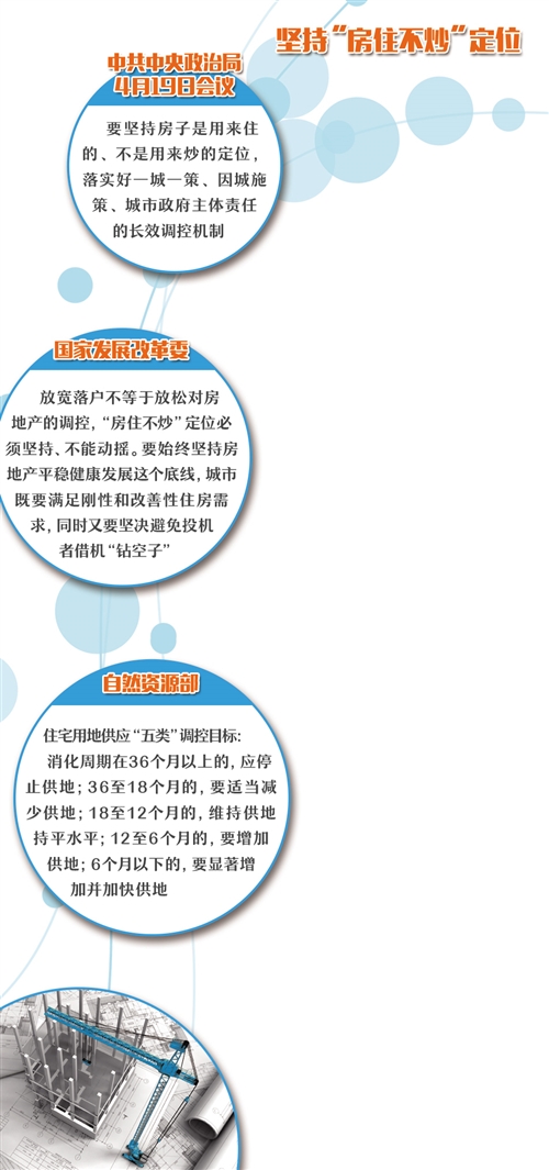 中共中央政治局4月19日召开会议要求,要坚持房子是用来住的、不是用来炒的定位,落实好一城一策、因城施策、城市政府主体责任的长效调控机制。