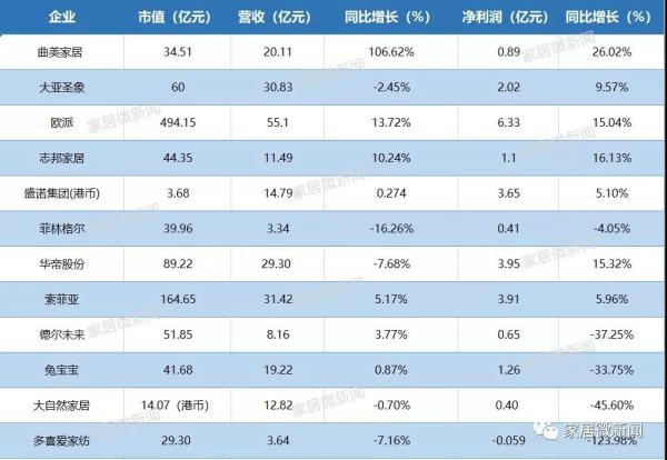 13家上市家居企业财报新鲜出炉,5家净利润同比下滑?